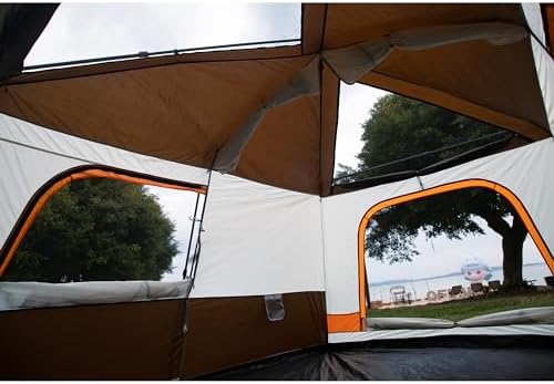 KTT Instant Tent 12 Person(B),Large Family Cabin Tents,Automatic Tent Build Quickly in 60S,2 Rooms,2Top Windows 3Doors and 3Windows with Mesh,Waterproof,Big Tent for Outdoor Camping(Brown)