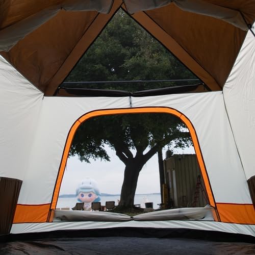 KTT Instant Tent 12 Person(B),Large Family Tents,Automatic pop up Tent Build Quickly in 60S,2 Rooms,2Top Windows 3Doors and 3Windows with Mesh(Brown)