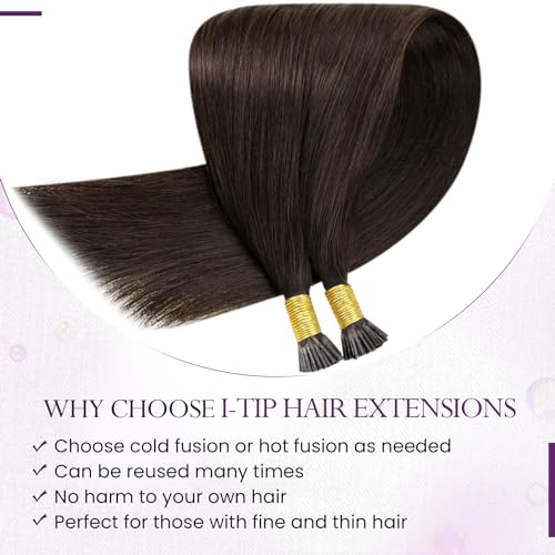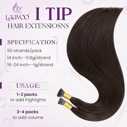 LaaVoo I Tip Hair Extensions Human Hair Darkest Brown Itip Human Hair Extensions Brown Itips Hair Extensions Real Human Hair Pre Bonded 22 Inch 50g 50set