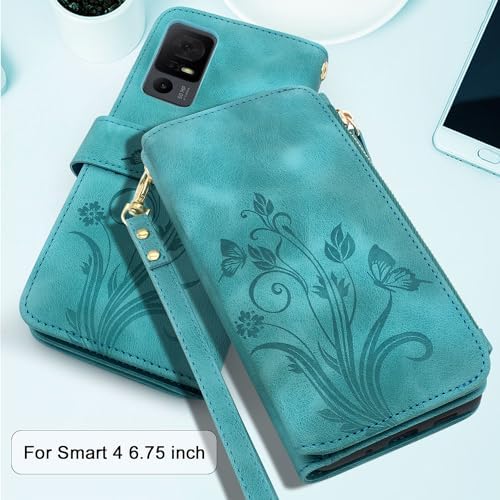 Lacass Case for Jitterbug Smart4,[Cards Theft Scan Protection] Card Holder Zipper Wallet Case Flip Leather Cover for Jitterbug Smart 4 (2023) for Seniors (aka Lively Smart) (Floral Blue Green)