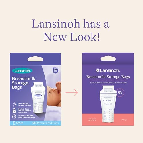 Lansinoh Breastmilk Storage Bags, 50 Count, Easy to Use Breast Milk Storage Bags for Feeding, Baby Essentials, Presterilized, Hygienically Doubled-Sealed for Freezing & Refrigeration, 6 Ounce