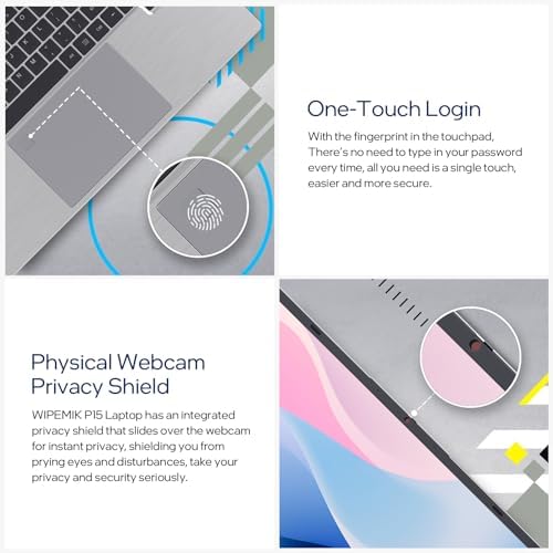 UNIQUE DESIGN – WIPEMIK P15 laptop has a physical cover obscures webcam for an assurance of instant privacy, a fingerprint recognition, just tap the button to switch on and log in, no difficult-to-remember passwords, 3 unique shortcut keys, One-click shortcut to open Intel Unison to connect with your phone. Transfer files & photos from your laptop, 2 customizable shortcut for quickly opening browser favorites, you can get what you want faster.