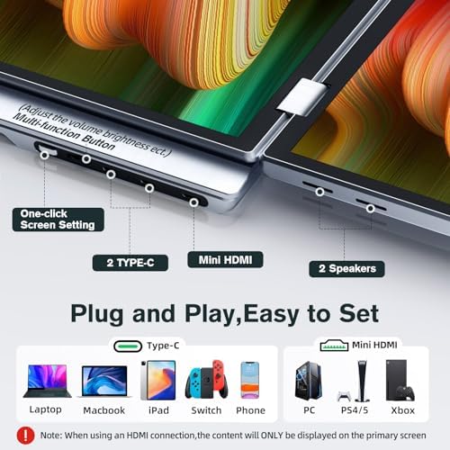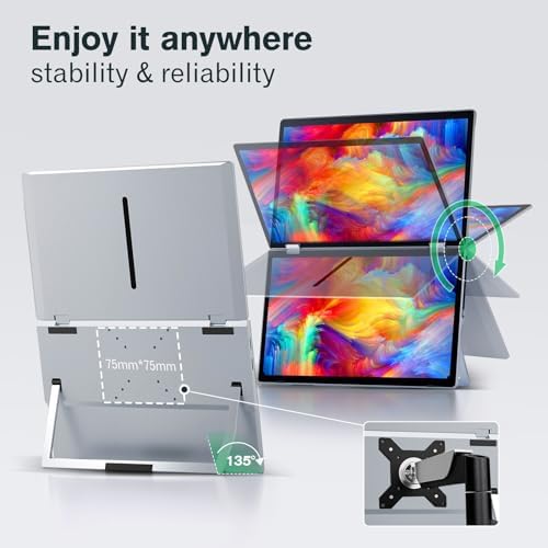 【Ergonomic Versatile Folding Monitor】Effortlessly share your screen in all directions with 0-340° rotation, making it perfect for collaborating with colleagues or partners. The built-in gravity sensors enable 180° automatic rotation and support duplicate, expand, split, landscape, and portrait modes for easy switching. Please note that 90° rotation is not supported, manual adjustment is required. Enjoy multi-screen simultaneous and independent displays to enhance your productivity.