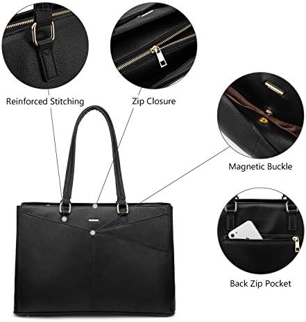 Laptop Tote Bag for Women 15.6 Inch Waterproof Leather Computer Bags Business Office Work Briefcase Black