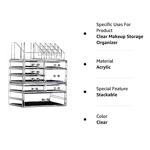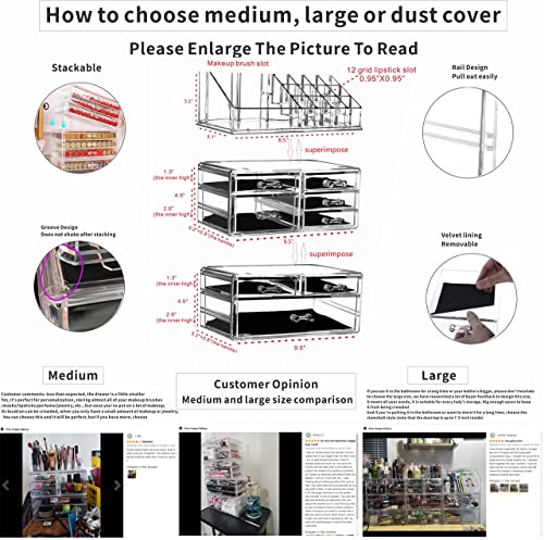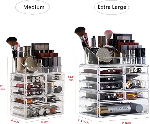 Large Clear Makeup Organizer Skin Care Cosmetic Display Cases Stackable Storage Box Make up Container Cube With 8 Drawers,Set of 3 By Cq acrylic