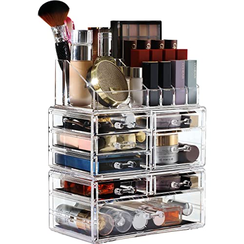 Designed to hold all your favorite makeup accessories and your best jewelry, the universal Cq acrylic Acrylic Cosmetic Box offers more storage and more convenience than your average jewelry box or cosmetic case. Featuring 8 large pull out drawers and 16 compartments, you’ll never again have to search for your lipstick, blush, or wedding right all over the house or bathroom.