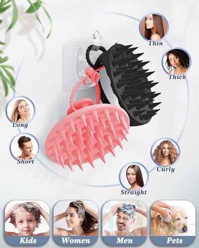 Large Hair Scalp Scrubber, One-Piece Silicone Scalp Massager for Wet Dry, Long Bristles Shampoo Brush for Dandruff Removal and Hair Growth with Free Strap&Hook.(Pink+Black)