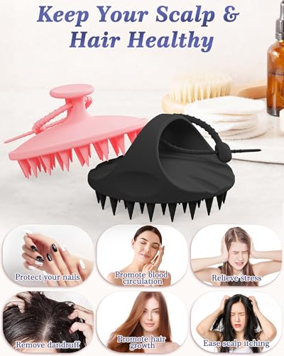 【Easy to Storage and Clean】 Just rinse it with water to get the foam out of the hair & body scrubber and hang it up with the free silicone strap and hook included in the pack after use. Package Included: Scalp Massager x2, Silicone Strap x2, Free Hook x1