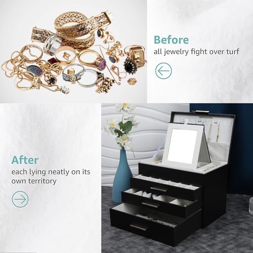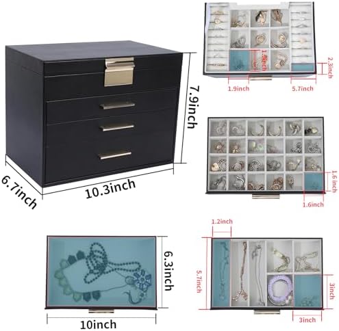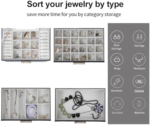 Space and Time Saving for Makeup Table: With our 4 layer jewelry box, all your jewelry will be in good order and easy to reach. From then on, you have a bright dresser that saves space and makes your room look neater and more elegant. In addition, our jewelry travel boxes are designed to categorize your jewelry at a glance, shortening search time.