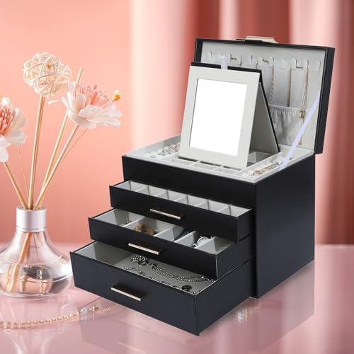 Be the first to review “Large Jewelry Box for Women, 4 Layer Jewelry Holder Organizer with Necklace Hooks, White Jewelry Box for Earrings Necklace and Bracelet Storage Gifts for Her (Black)”