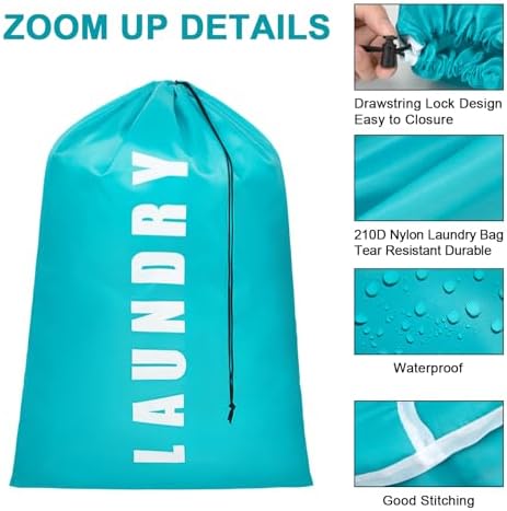 Laundry Bag,2 Pack Extra Large Travel Laundry Bags for Dirty Clothes, Laundry Bags for Traveling,Laundry Bags for Dorm,24″ x 36″ Laundry Travel Bag(Cyan + Gray)