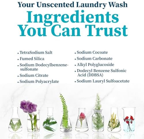 Laundry Wash, Unscented, Sensitive Skin Natural Detergent, Laundry Supplies for Baby Clothes, Plant-Based, No Harmful Ingredients. (200 Loads)