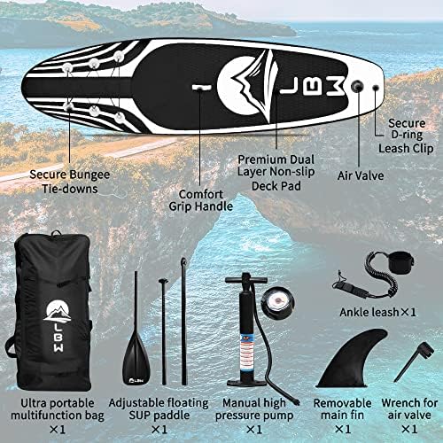 LBW Inflatable Stand Up Paddle Board with Paddle Board Accessories, Adjustable Floating SUP Paddle, Hand Pump, Removable Fin, Waterproof Backpack, Ankle Leash, Wrench, Non-Slip Deck