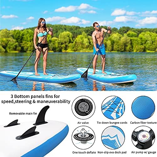 LBW Inflatable Stand Up Paddle Board with Paddle Board Accessories, Adjustable Floating SUP Paddle, Hand Pump, Removable Fin, Waterproof Backpack, Ankle Leash, Wrench, Non-Slip Deck