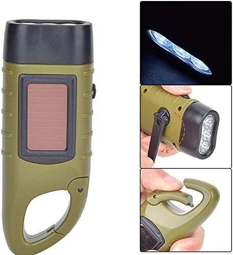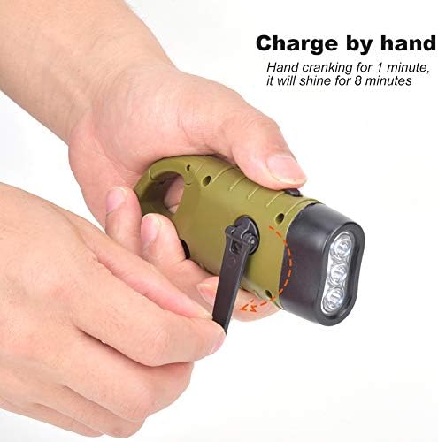 LED Emergency Flashlight, Solar Panel Portable LED High Brightness Light Emergency Hand Cranking Flashlight for Survival Gear for Emergency Hiking Camping(ArmyGreen)