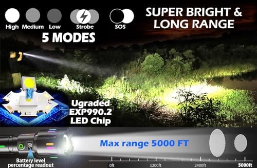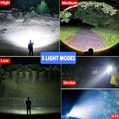 LED Flashlight, Rechargeable Flashlights High Lumens Bright 990000 Lumen, 5 Mode Tactical Flash Light Powerful IPX7 Waterproof Zoomable Focus for Emergency Camping Essential Hiking Gear Fishing Home