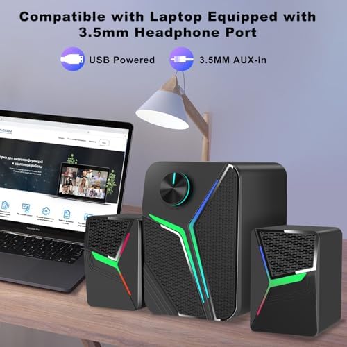 Broad Compatibility:The 2.1 computer speakers can be used with any device with a standard 3.5mm headphone jack, such as a desktop, laptop, phone, tablet, monitor, TV, etc.And the speaker can be powered with any 5V/1A USB adapter.