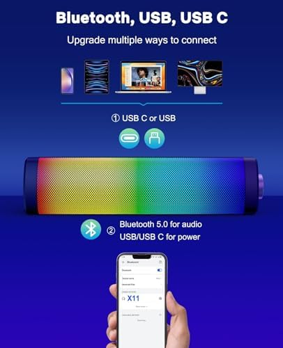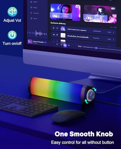 LENRUE USB Computer Speakers for Desktop Monitor, Small PC Speakers with Crisp Sound, Knob Control, Touch Colored Lights, Bluetooth/USB C for PC Laptop Tablet Phone