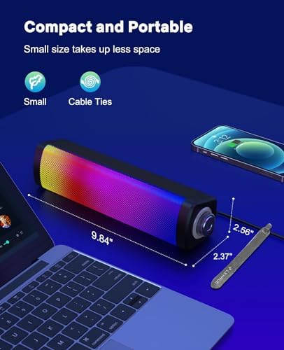 Cable Ties & Compact Portable: PC speakers increase cable ties to organize cables and take up less space. Small and compact size perfectly sits unobtrusively below the monitor.