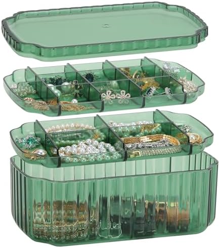LETURE 3-Layer Jewelry Organizer Box for Earrings, Rings, Necklaces, Bracelets, Clear Plastic Bead Storage Containers for Crafts (Green)