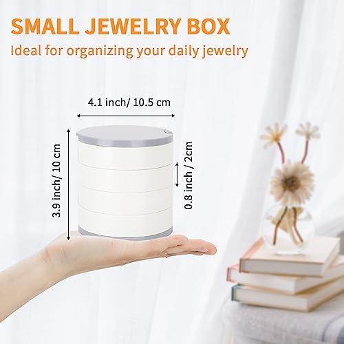 LETURE 4-Layer Rotating Small Jewelry Organizer for Women Girls, Travel Acrylic Jewelry Holder for Necklaces Earring Bracelets Rings (White)