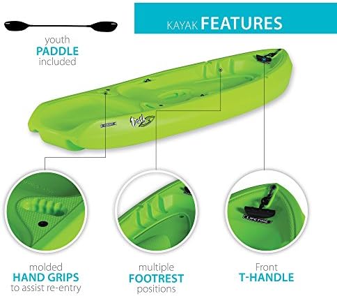 The Lifetime Dash 66 Kayak is a great kayak for smaller paddlers. With a carry handle molded into the seat, the kayak is convenient to transport to and from the water. The ergonomic cockpit design increases the balance and tracking of the watercraft. The molded paddle cradle gives paddlers a convenient location to store their paddle while out on the water. The 6’-6” youth Dash kayak has a 150 lb. weight capacity and comes in lime green. Includes an integrated center carry handle, a swim-up deck, and a 5-year limited warranty.