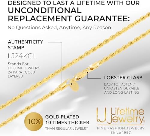 Be the first to review “LIFETIME JEWELRY 24k Real Gold Plated 3mm Gold Rope Chain for Men & Women Diamond Cut Gold Chain Necklace Women & Necklace for Men 14 to 36 Inch”