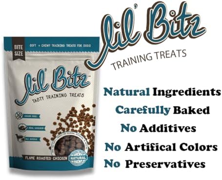 Lil’ Bitz Flame Roasted Chicken Training Treats for All Dog Breeds – Low Calories, Grain Free, Natural Ingredients, NASC Compliance – Perfect Reward for Dogs of Every Size (6 Pack)