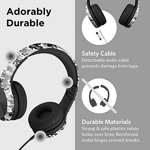 LilGadgets Connect+ Pro Kids School Headphones – Designed with Kids’ Comfort in Mind, Foldable Over-Ear Headset with in-line Microphone, Kids Headphones for School, Snow Camo