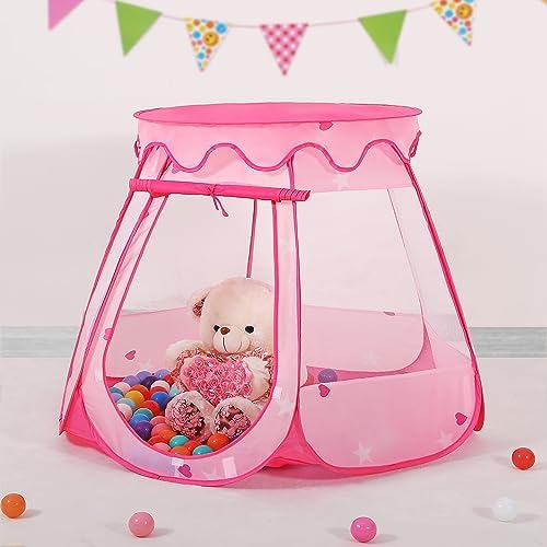LimitlessFunN Princess Pop Up Play Tent with Star Lights & Carrying Case, Foldable Kids Ball Pit Playhouse for 1 2 3 Year Old, Baby, Toddler, Girl Birthday Gift, Indoor & Outdoor, 48″x36″