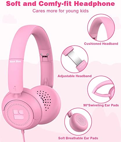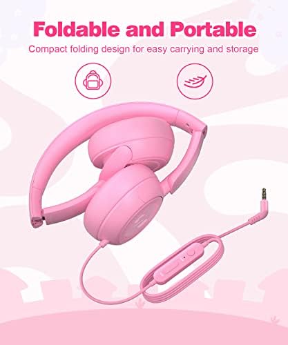 Link Dream Kids Headphones for School with Microphone Stereo On-Ear Folding 85/94dB Volume Control Child Headphones for Kids/Girls/iPad/Fire Tablet/PC/Travel, Pink
