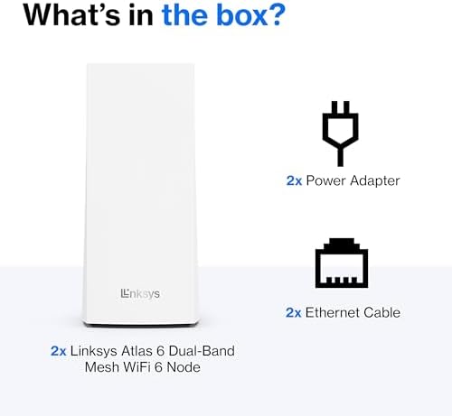 Linksys Atlas WiFi 6 Router Home WiFi Mesh System, Dual-Band, 4,000 Sq. ft Coverage, 50+ Devices, Speeds up to (AX3000) 3.0Gbps – MX2000 2-Pack