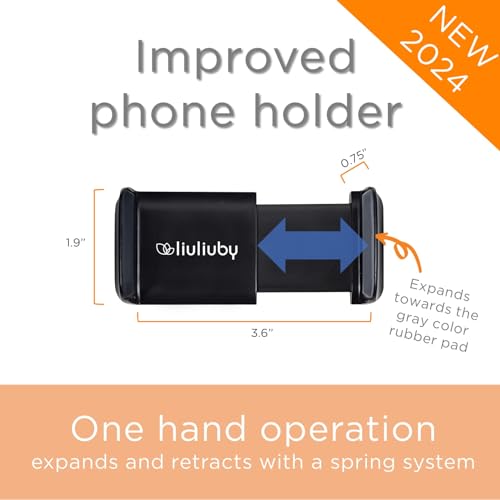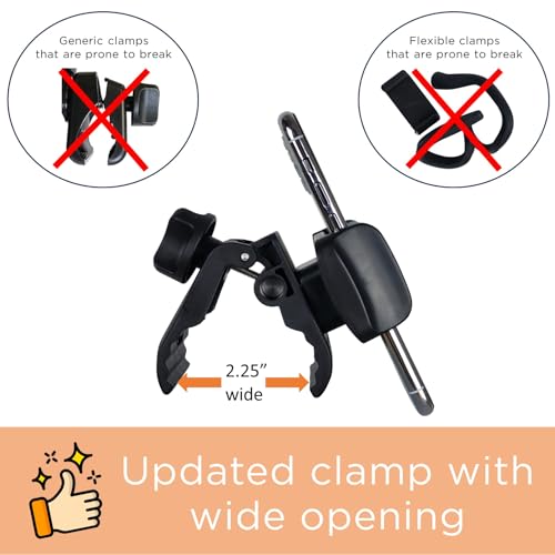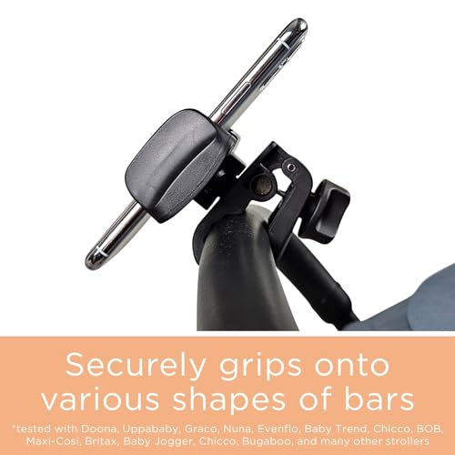 liuliuby Stroller Phone Holder – Universal Phone Holder for Stroller – One Hand Operation & Angle Adjustable – Phone Mount for Belly Bar, Hand Bars, Frames, Shopping Carts – Stroller Accessories