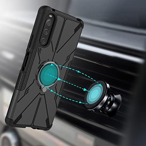 LiuShan Compatible with Sony Xperia 10 IV case,360° Rotation Ring Holder Kickstand Military Grade Shockproof Cover for Sony Xperia 10 IV Smartphone(Not Applicable Sony Xperia 1 IV,Black