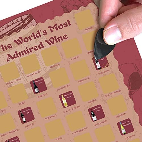 50 Wine Scratch Off Poster, The World’s Most Admired Wine Drink Bucket List With Scratching Tool, Gifts for Adults, Wall Decor Bar Pub Themed Kitchen Restaurant Home, 16.5” x 23.4”