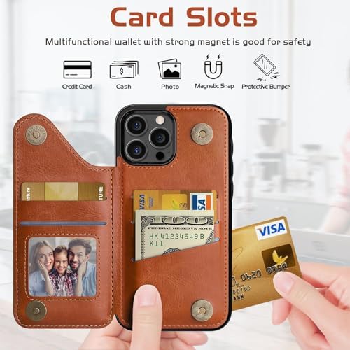 LOHASIC for iPhone 15 Pro Wallet Case, 5 Card Holder Phone Cover to Men Women, Premium PU Leather Credit Slot, Magnetic Clasp Kickstand Protective Flip Folio Portfolio, 6.1 Inch, 5G, 2023 – Brown
