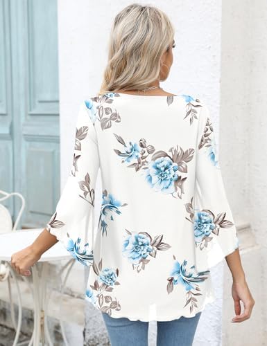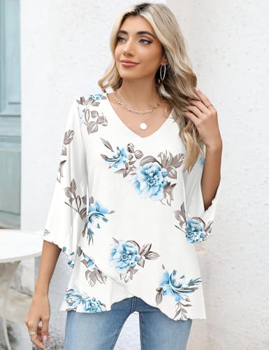 LOMON Women’s 3/4 Sleeve Tunic Top Dressy V Neck Mesh Blouse Double Layered Shirt with Leggings