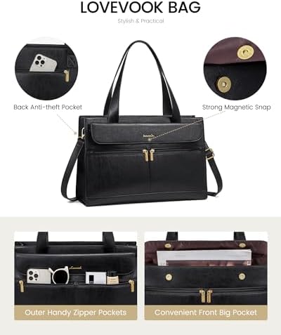 【Perfectly Sized Work Bag】 This work bags for women is 16.7″” L x 6″” W x 12.2″” H, net weight of 3 lbs. Its elegance and versatility make it a perfect match for various occasions. The stylish design of this laptop tote makes it an ideal gift for anniversaries, birthdays, Mother’s Day, Valentine’s Day, and Christmas.