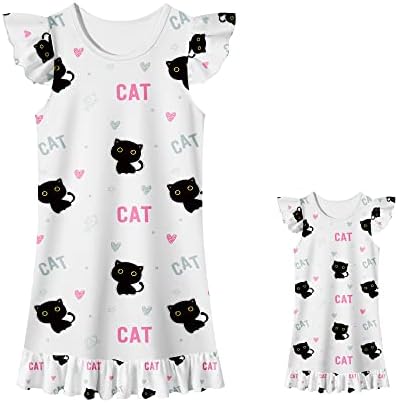 LQSZ Doll and Girl Matching Nightgown Outfit Pajamas Flutter Short Sleeves Nightie Nightgown for Girls and 18″ Dolls