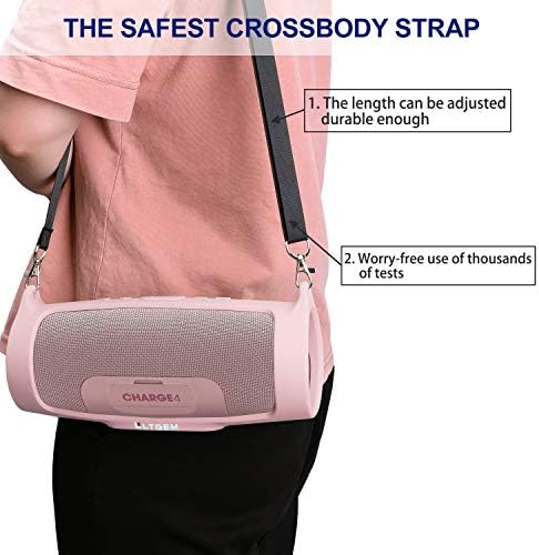 LTGEM Silicone Case Cover for JBL Charge 4 Speaker,Travel Protective Carrying Gel Soft Skin, Waterproof Rubber Pouch with Shoulder Strap(Pink)