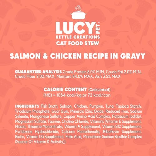 Lucy Pet Products Kettle Creations Salmon and Chicken Cat Stew Recipe in Gravy 2.47oz, red (LPPFFLW401)