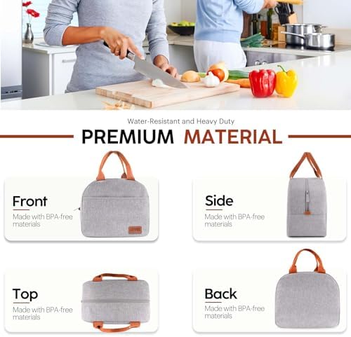 Lunch Bag Lunch Box for Women & Men, Large Capacity Insulated Lunch Bag for Adult, Leakproof Reusable Lunch Tote Bags for Work/Office/Travel/Picnic (Grey)