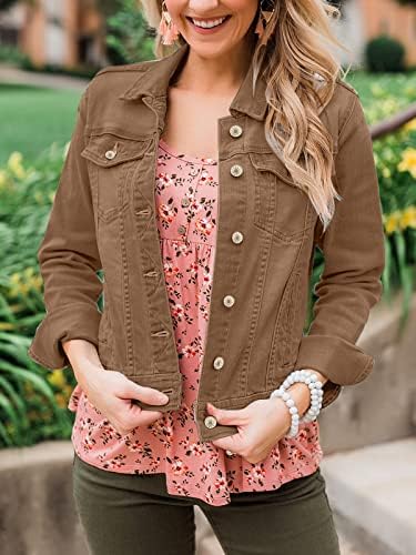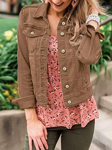 luvamia Women’s Basic Button Down Stretch Fitted Long Sleeves Denim Jean Jacket