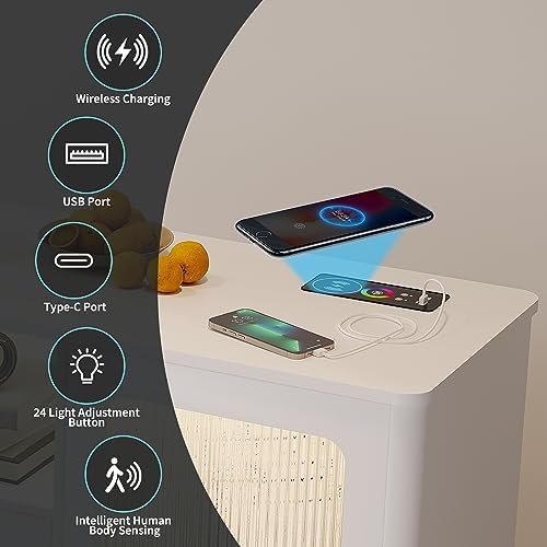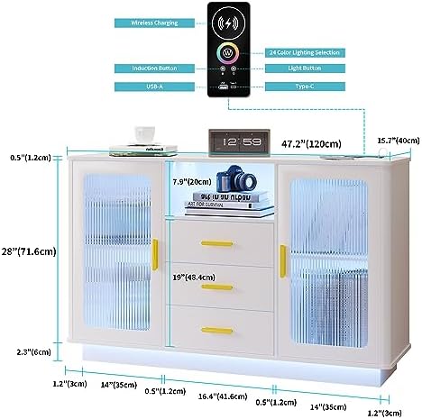 🟦 【3-in-1 charging station】Designed with a 3-in-1 charging station, the smart buffet sideboard provides you with a variety of charging methods, more convenient, fast, and intelligent.