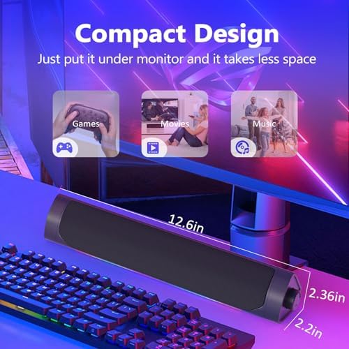 【Wider Compatibility】Our Pc speaker for desktop with the latest built-in decoder chip and EQ bluetooth 5.0 chip are compatible with Laptops,Pc and some android Phones with type-C port, as long as they have the latest audio drivers installed for the sound card. USB C to USB Adapter in the box will make the speaker work well with Type-C port only devices like Samsung phones,Macbook Air,Pro,Huawei phones or other devices. More Compatible than other speakers with only USB cable