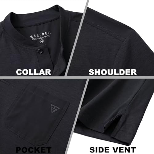 M MAELREG Collarless Golf Shirts for Men Dry Fit Moisture Wicking Performance Pocket Heather Men’s Henley Shirts Short Sleeve