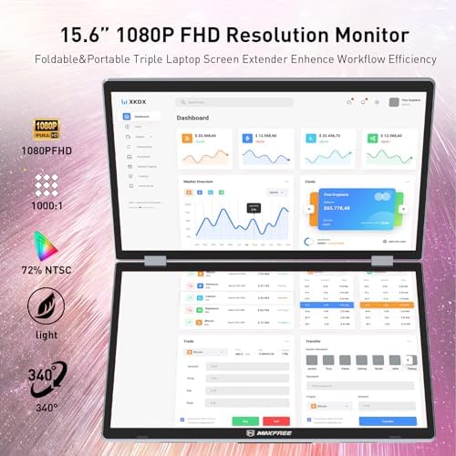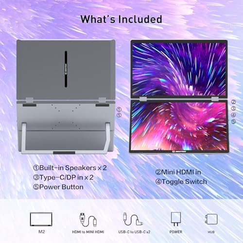 M2 Dual Portable Monitor – 15.6″ 1080P FHD 340° Rotation – Laptop Screen Extender, Folding Stacked Monitor, USB-C HDMI Plug&Play w/Hub for Mac OS/Win OS