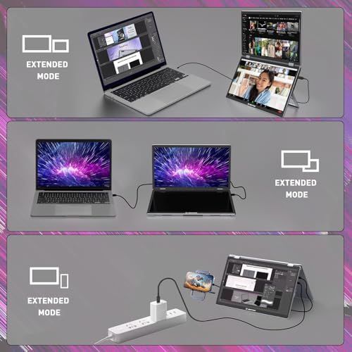 Universal Compatibility — Maxfree M2 portable laptop screen extnder monitor seamlessly adapts to Windows-based or a Mac OS laptop both. What’s more, with just one full-featured Type-C cable, it’s plug-and-play, eliminating the hassle of complex setup procedures and ensuring a seamless connection. NOTE: When connecting to a Mac OS laptop. This step will ensure a seamless and optimal experience when using the display with your Mac OS laptop.