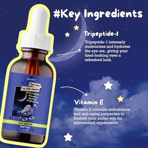 Made in USA Natural Peptide Retinol Niacinamide Eye Serum Anti Aging Brightening Firming Under Eye Care – 1oz/30ml (#Purifect Eye Me to the Moon Peptide Eye Serum)