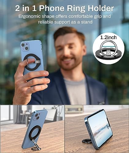 【Flexible and Tough】The ring holder for MagSafe offers adjustable angles up to 180° and 360° rotation, providing comfortable grip and versatile viewing positions on a desktop. You can easily hold your phone at any desired angle and height. It has undergone rigorous testing and can withstand 35,000 folds without loosening.